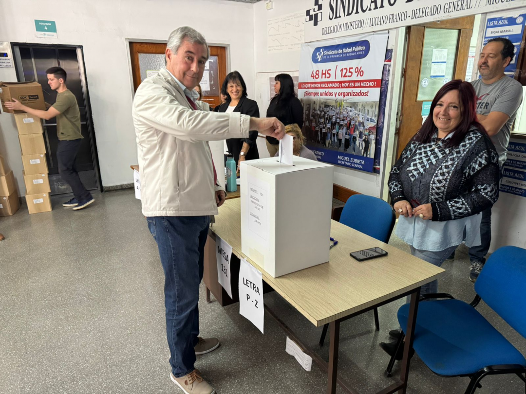 En la jornada de este Miércoles 8 de Octubre; Nuestro Sindicato, que representa a trabajadores de la Salud, municipales adheridos y Jubilados y Pensionados del Instituto de Previsión Social de la Provincia de Buenos Aires; llevó a cabo sus elecciones para renovación de Comisión Directiva provincial, Comisión Revisora de Cuentas, Congresales Provinciales y Congresales a la Federación de Asociaciones de Trabajadores de la Sanidad Argentina (FATSA); con la participación de casi un 38,5% del Padrón Electoral; el Escrutinio Provisorio arroja que la mayoría de los votos emitidos, 13.397 fueron a la Lista Azul, donde ademas hubo 28 votos en Blanco y 7 votos Nulos. Lo que nos conlleva a certificar que los companeros y companeras que expresaron sus votos, acompañaron a la Lista Azul pertteneciente a la Agrupación “8 de marzo“ presidida por nuestro compañero, Carlos Mario West Ocampo; y conducida por nuestro actual Secretario General, Miguel Ángel Zubieta.